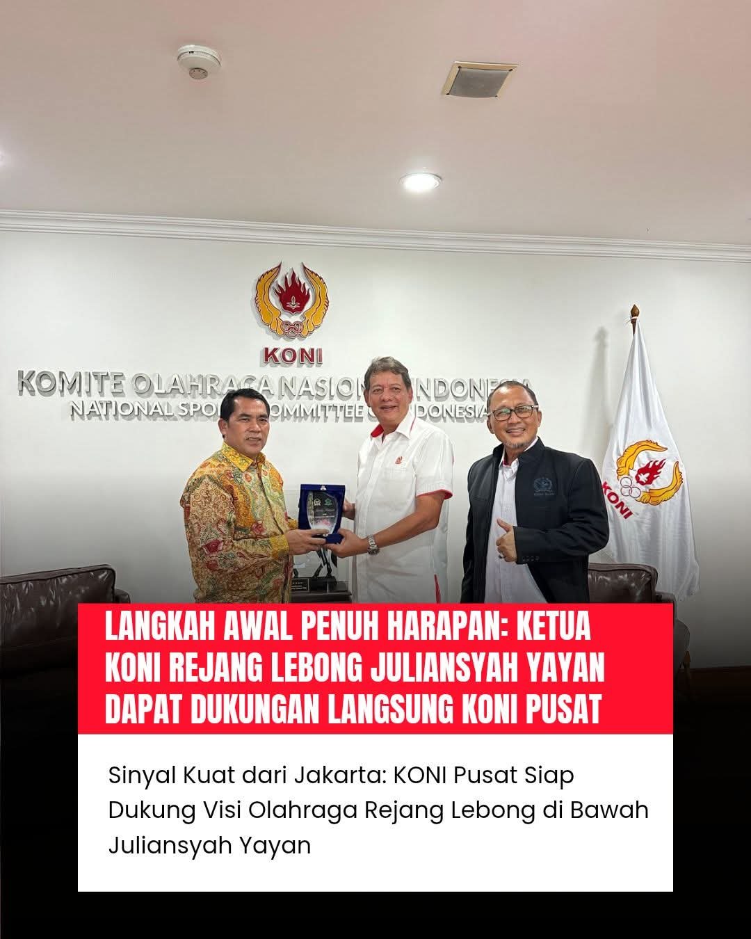 Melalui pertemuan strategis ini, Juliansyah Yayan berharap sinergi antara KONI dan IMI Rejang Lebong dengan KONI Pusat semakin solid, sehingga olahraga Rejang Lebong terus berkembang dan mampu melahirkan atlet-atlet berprestasi yang mengharumkan nama daerah.