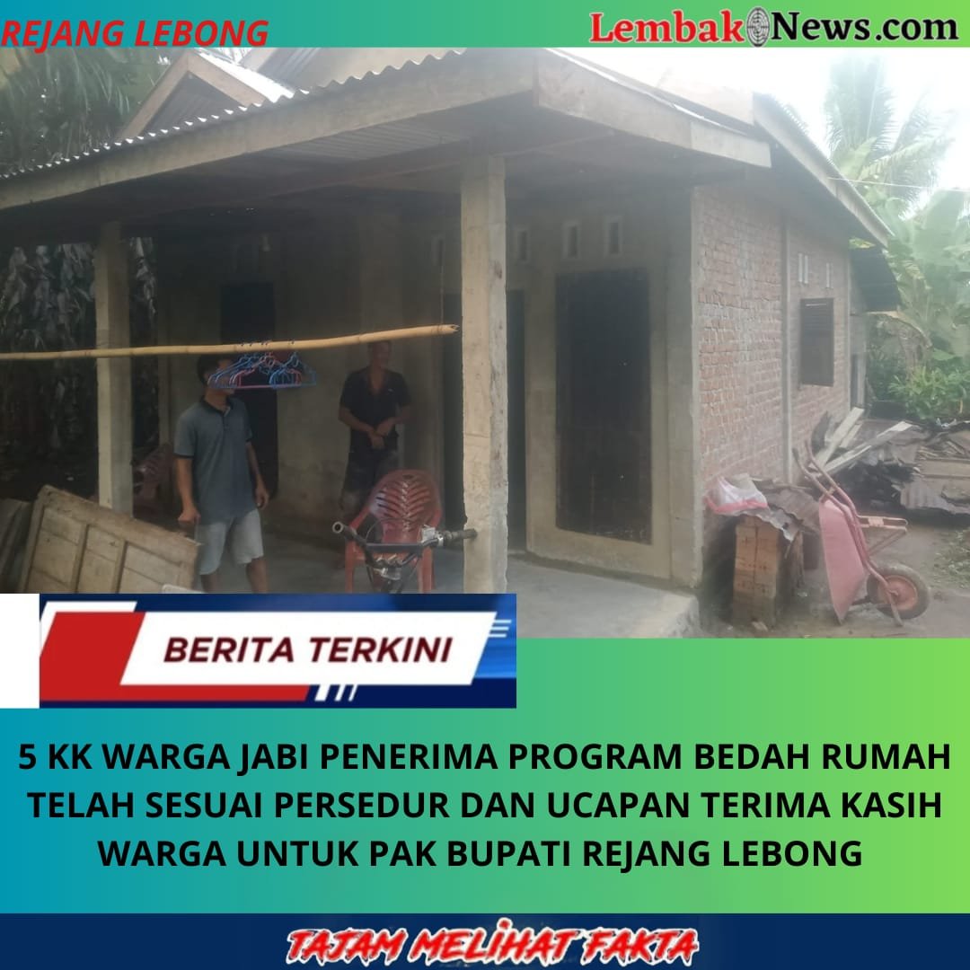 Rejang Lebong,Lembaknews.com-kamis 05-februari 2026 awak media menelusuri dan Kros cek ke lapangan tepatnya di Desa.Jabi Kecamatan Sindang Beliti Ulu.Kabupaten Rejang Lebong dan mendatangi salah satu penerima bantuan bedah rumah tahun anggaran 2025 lalu,