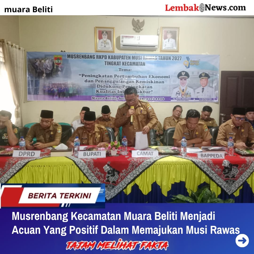 Musyawarah Perencanaan Pembangunan (Musrenbang) Kecamatan Muara Beliti digelar pada Selasa, 3 Januari 2026. Kegiatan ini dihadiri seluruh jajaran pemerintah desa se-Kecamatan Muara Beliti.